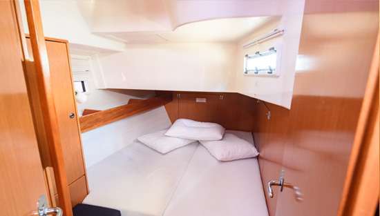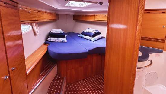 Яхта Bavaria 40 Cruiser – це зразок німецької якості та раціональності. Яхта була спроектована для комфортного перебування на ній екіпажу до 8 осіб. Є 3 каюти. Одна велика «майстер-каюта» в носовій частині човна з власним туалетом і душем і 2 кормових каюти справа і зліва від входу. І додатково ще 2 спальних місця передбачені в камбузі, де опускається стіл і виходить великий диван 1,60 на 2 метри. У кожній каюті є постільна білизна, подушки, теплі ковдри і рушники. Для особистих речей в каютах є шафа з вішалками і кілька шаф-пеналів поменше.