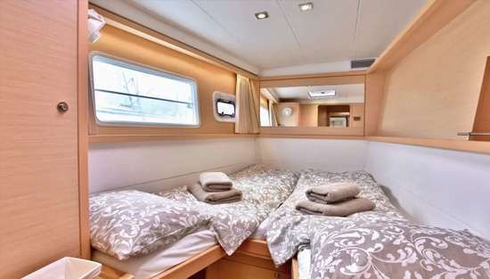 Катамаран зазвичай має 4 гостьові каюти. Кожна з яких має окрему ванну кімнату з туалетом і душем (en-suite), і 2 окремі носові каюти для персоналу. Це забезпечує пасажирам рівень приватності та зручності, особливо під час тривалих подорожей.